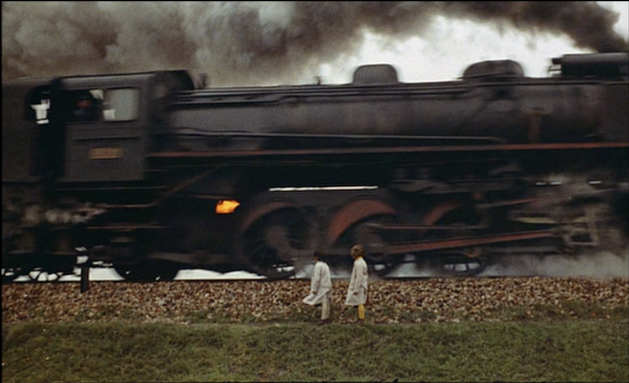 The scene captures exactly the way kids talk when grownups aren't around, their cadences and rhythms, and their easy, fantastical lies that bend the outer world through a child's interior lenses. It compels Ana to wish up Frankenstein's Monster at her moonlit window and, furtively at first, at the farmhouse. There she encounters an injured soldier who has jumped from a passing train (presumably one of the Spanish maquis guerillas resisting the Franco regime) and she tends to him as if he is the "spirit" she imagines.
