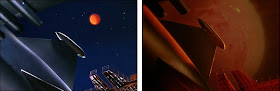 Regrettably, after a rough landing amongst the snowy hills of Zyra, the anticlimactic closing moments on this new Eden look more than a little cartoonish and hastily rendered. Nobody stepping out to view "the first sunrise" so much as mentions the pyramids in the distance or the monolithic temple-like structure in the foreground. (The stagehand whose shadow slinks out of frame might have been blocking the view.)