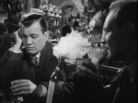 Yet for all the fine nuggets in Greene's script, and all the exquisite camerawork and deftly sketched characters (including a gallery of economically realized supporting parts), the favorite attraction here for me is the film's big reveal, handily the ne plus ultra of big reveals. Even after a dozen viewings, when we reach that scene we're keyed up with expectation: The camera tight on a content cat grooming itself in the shadows between a pair of polished shoes. A local resident, complaining about Martins' shouting, opens an upstairs window and poof!, like a magician's trick there's Orson Welles snapped into being beneath the window light. Welles caps the instant with an "I know a secret" smile that brings his boyish and charismatic Harry Lime to coruscating life.