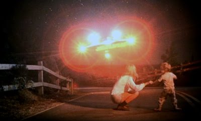 Here's the Gulliver-like head of my pal Glenn Erickson (who by night dons a mask and rides the cinema countryside as DVD Savant), surveying a visual effects landscape for Close Encounters of the Third Kind, summer 1977. Now whenever I view this scene, I picture his looming noggin about to get creamed with a glowing pie. (Fortunately, Glenn likes pie.)