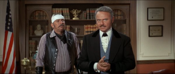 And of course these three stooges work against the natural smarts and charisma of Sheriff Bart (Cleavon Little), the well-spoken, urbane newcomer whose ride into town is greeted with cocked shotguns and an "Up yours, nigger" barked by an apple-cheeked granny. (Do I really need to spell this one out?)
