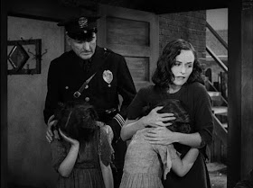 There's plenty more to Modern Times, of course. After the factory worker is sent to the hospital, Chaplin abandons the "science fiction" scenario to follow the Tramp, now back in his famous too-tight jacket and baggy pants, into the outside "real" world. It's a world of hunger, political inequality, and good people getting by as best they can against powerful oppressive forces. The episodic structure uses comedy to pin down like beetles other contemporary topics much on Chaplin's mind. His takes on unemployment, poverty, drugs, strikes, strike-busting, and riots still pack a wallop of modern currency.