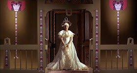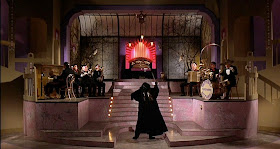 The music in Dr. Phibes deserves particular attention: where else are you going to find such sinister machinations carried out to the bouncy vaudevillian strains of "One for My Baby (and One More for the Road)" or "Darktown Strutters Ball" performed by Phibes' personal orchestra of unnerving clockwork mannequins? The film begins with Phibes, his back to us, emoting dramatically on an enormous elevating altar/pipe organ à la the Phantom of the Opera. Last May I attended a university graduation ceremony. The processional music was Mendelssohn's "War March of the Priests," and while hundreds of newly minted grads were filing into the stadium I turned to Elizabeth and asked, "I wonder if they know they're graduating to the opening theme from Dr. Phibes?"