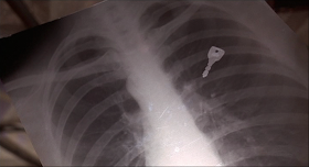 And that really is Price's colleague from Orson Welles' Mercury Theatre three decades earlier, Joseph Cotten (Citizen Kane, The Third Man) as chief surgeon Vesalius, the final intended victim. Vesalius' plight — Phibes has kidnapped his son, implanted a key near the boy's heart, and Vesalius must surgically extract the key to unlock his son's bonds before acid rains down on the boy's face — is a "race against time" trap that might have inspired the black-souled Saw series.