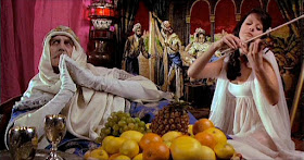 Horror film cognoscenti generally regard Theatre of Blood as the superior picture to The Abominable Dr. Phibes, and it's hard to disagree. Certainly it's near the top of Price's canon and gives him a role that frees him from the make-up restrictions required to play Phibes. Elizabeth and I watched it last night, and for my money The Abominable Dr. Phibes is more fun while Theatre of Blood makes a better bookend to it than does Rises Again.